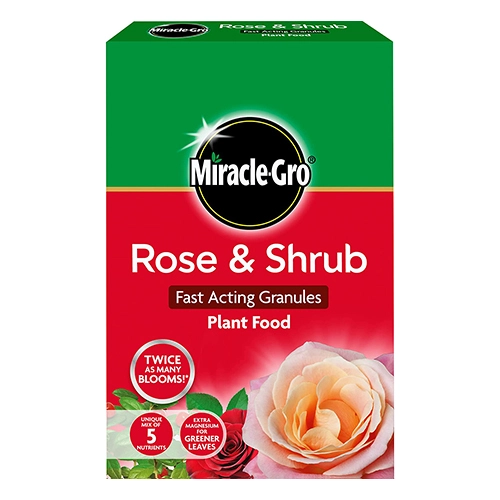 Miracle-Gro Rose & Shrub Fast Acting Granules Plant Food is rich in essential nutrients with extra magnesium for healthy growth. Plants will be fed for up to 3 months, producing top quality blooms and greener leaves.