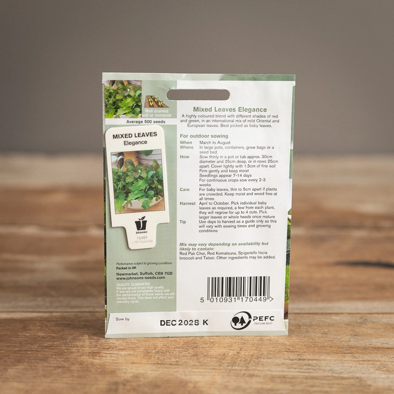 Are you looking for the product "Mixed Leaves Elegance"? We offer Johnsons Seeds products in our garden centers in Donaghadee, Bushmills, Galgorm and Logwood. You can also order the product "Mixed Leaves Elegance" online for £ 3.49 or check the products in Seeds & Bulbs. We look forward to seeing you soon!