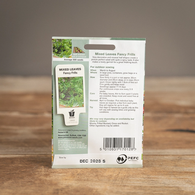 Are you looking for the product "Mixed Leaves Fancy Frills"? We offer Johnsons Seeds products in our garden centers in Donaghadee, Bushmills, Galgorm and Logwood. You can also order the product "Mixed Leaves Fancy Frills" online for £ 3.49 or check the products in Seeds & Bulbs. We look forward to seeing you soon!