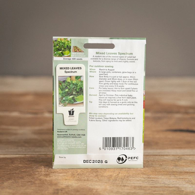 Are you looking for the product "Mixed Leaves Spectrum"? We offer Johnsons Seeds products in our garden centers in Donaghadee, Bushmills, Galgorm and Logwood. You can also order the product "Mixed Leaves Spectrum" online for £ 3.49 or check the products in Seeds & Bulbs. We look forward to seeing you soon!