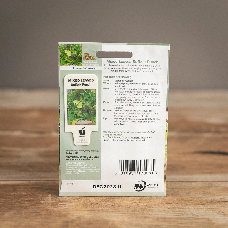 Are you looking for the product "Mixed Leaves Suffolk Punch"? We offer Johnsons Seeds products in our garden centers in Donaghadee, Bushmills, Galgorm and Logwood. You can also order the product "Mixed Leaves Suffolk Punch" online for £ 3.49 or check the products in Seeds & Bulbs. We look forward to seeing you soon!