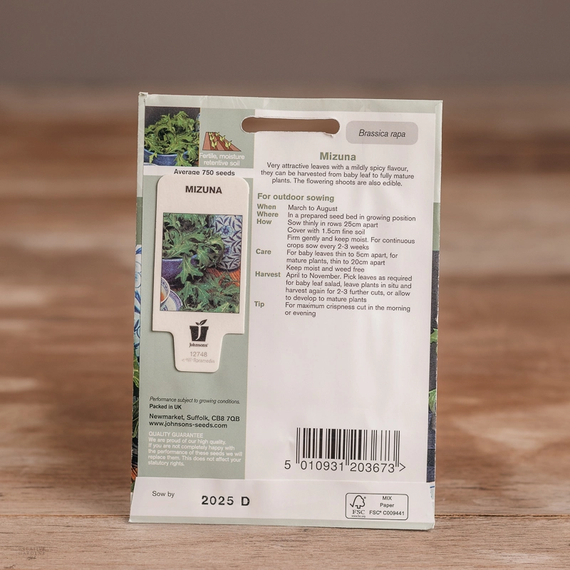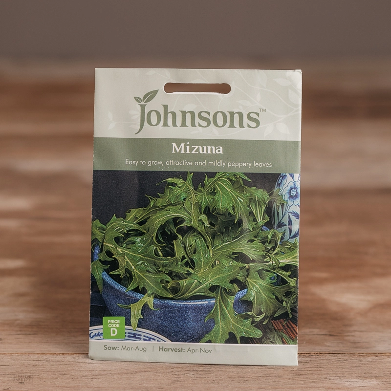 Are you looking for the product "Mizuna"? We offer Johnsons Seeds products in our garden centers in Donaghadee, Bushmills, Galgorm and Logwood. You can also order the product "Mizuna" online for £ 3.19 or check the products in Seeds & Bulbs. We look forward to seeing you soon!