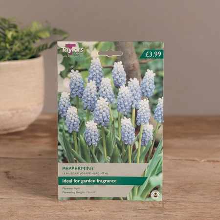 Are you looking for the product "Muscari Peppermint"? We offer Taylors Bulbs products in our garden centers in Donaghadee, Bushmills, Galgorm and Logwood. You can also order the product "Muscari Peppermint" online for £ 3.99 or check the products in Seeds & Bulbs. We look forward to seeing you soon!