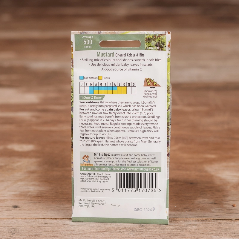 Are you looking for the product "Mustard Colour & Bite"? We offer Fothergills Seeds products in our garden centers in Donaghadee, Bushmills, Galgorm and Logwood. You can also order the product "Mustard Colour & Bite" online for £ 2.99 or check the products in Seeds & Bulbs. We look forward to seeing you soon!