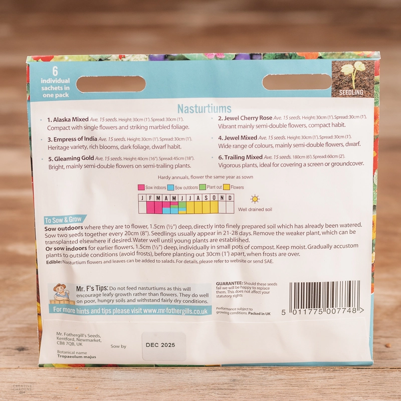 Are you looking for the product "Nasturtium Collection"? We offer Fothergills Seeds products in our garden centers in Donaghadee, Bushmills, Galgorm and Logwood. You can also order the product "Nasturtium Collection" online for £ 4.99 or check the products in Seeds & Bulbs. We look forward to seeing you soon!