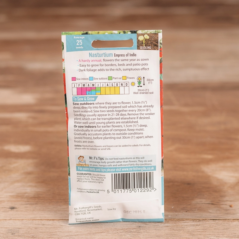 Are you looking for the product "Nasturtium Empress Of India"? We offer Fothergills Seeds products in our garden centers in Donaghadee, Bushmills, Galgorm and Logwood. You can also order the product "Nasturtium Empress Of India" online for £ 3.19 or check the products in Seeds & Bulbs. We look forward to seeing you soon!