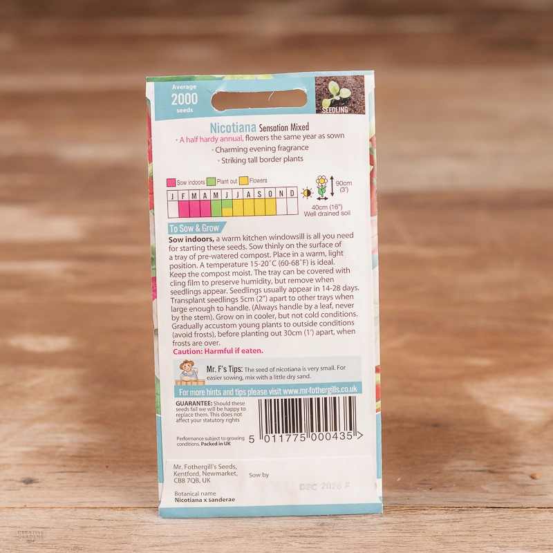Are you looking for the product "Nicotiana Sensation Mix"? We offer Fothergills Seeds products in our garden centers in Donaghadee, Bushmills, Galgorm and Logwood. You can also order the product "Nicotiana Sensation Mix" online for £ 2.99 or check the products in Seeds & Bulbs. We look forward to seeing you soon!