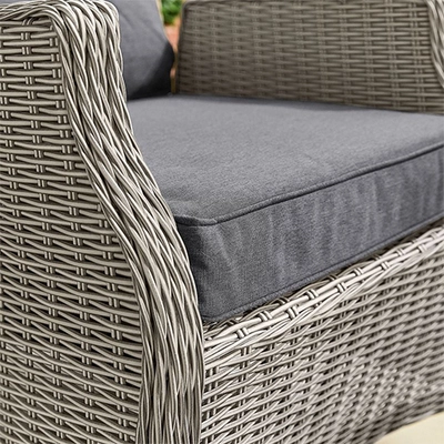 This furniture is crafted using powder coated aluminium framework which offers protection from rust and corrosion, even during damp conditions. The rattan weave is PE synthetic rattan, also famed for its weatherproof qualities and is protected from the sun's UV rays, meaning it will not fade, as well as frost and snow so it will not crack or go brittle. This allows you to leave your rattan outside all year round, even throughout the coldest and dampest months, without damage to your set.