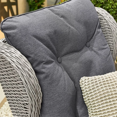This set comes with padded cushions included. Whilst the cushion covers are machine washable, the cushions are not weatherproof and we do recommend storing them inside when not in use.
