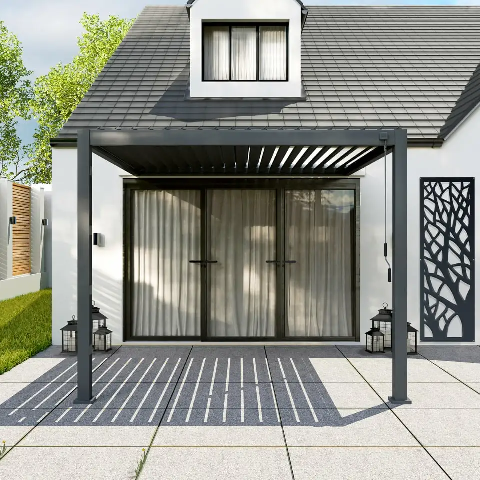 This pergola is the perfect opportunity to extend your outdoor season. Thanks to the tilting double-layer louvres, you can switch between a closed, sheltered space, and an open top to allow sunlight to come flooding in. This means that you can use your outdoor area even when the weather is less than perfect. This pergola ultimately allows you to choose between sitting in sunshine or shade, and provides shelter should it start to rain at a moment's notice - typical of British weather!