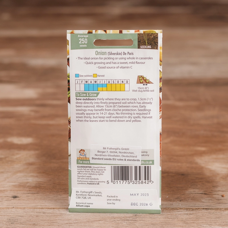 Are you looking for the product "Onion De Paris (Silverskin)"? We offer Fothergills Seeds products in our garden centers in Donaghadee, Bushmills, Galgorm and Logwood. You can also order the product "Onion De Paris (Silverskin)" online for £ 2.49 or check the products in Seeds & Bulbs. We look forward to seeing you soon!