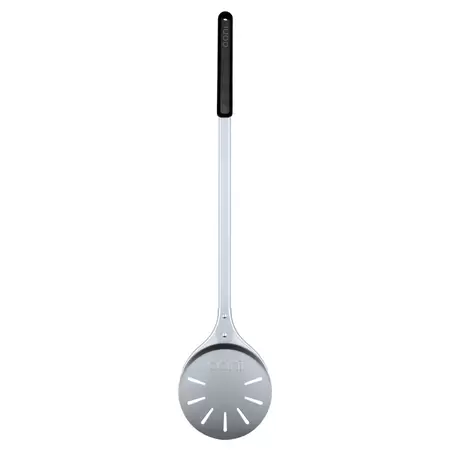 The ooni turning peel allows you to turn your pizzas like a pro without removing them from the oven which allows them to cook faster. The 7" Anodised aluminium peel will slide under your pizza allowing you to turn it with ease while the perforations allow excess flower from the base to fall away.