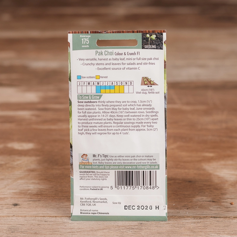 Are you looking for the product "Pak Choi Colour & Crunch F1"? We offer Fothergills Seeds products in our garden centers in Donaghadee, Bushmills, Galgorm and Logwood. You can also order the product "Pak Choi Colour & Crunch F1" online for £ 2.99 or check the products in Seeds & Bulbs. We look forward to seeing you soon!