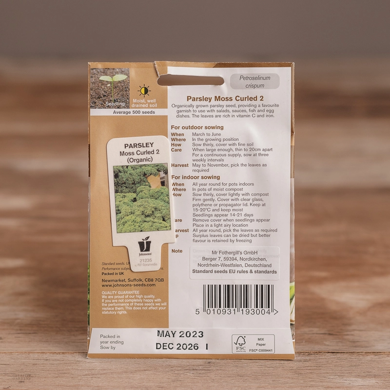 Are you looking for the product "Parsley Moss Curled 2 Organic"? We offer Johnsons Seeds products in our garden centers in Donaghadee, Bushmills, Galgorm and Logwood. You can also order the product "Parsley Moss Curled 2 Organic" online for £ 3.19 or check the products in Seeds & Bulbs. We look forward to seeing you soon!