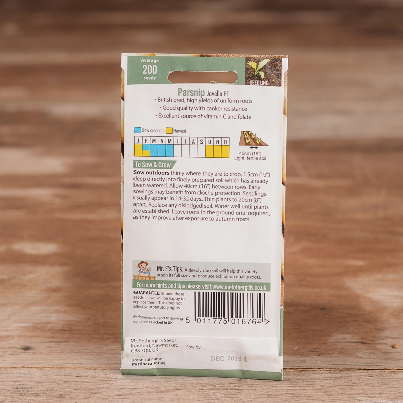 Are you looking for the product "Parsnip Javelin F1"? We offer Fothergills Seeds products in our garden centers in Donaghadee, Bushmills, Galgorm and Logwood. You can also order the product "Parsnip Javelin F1" online for £ 3.49 or check the products in Seeds & Bulbs. We look forward to seeing you soon!