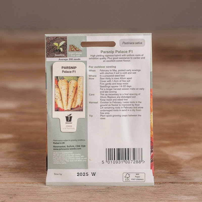 Are you looking for the product "Parsnip Palace F1"? We offer Johnsons Seeds products in our garden centers in Donaghadee, Bushmills, Galgorm and Logwood. You can also order the product "Parsnip Palace F1" online for £ 3.49 or check the products in Seeds & Bulbs. We look forward to seeing you soon!