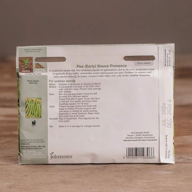 Are you looking for the product "Pea (Early) Douce Provence"? We offer Johnsons Seeds products in our garden centers in Donaghadee, Bushmills, Galgorm and Logwood. You can also order the product "Pea (Early) Douce Provence" online for £ 3.99 or check the products in Seeds & Bulbs. We look forward to seeing you soon!