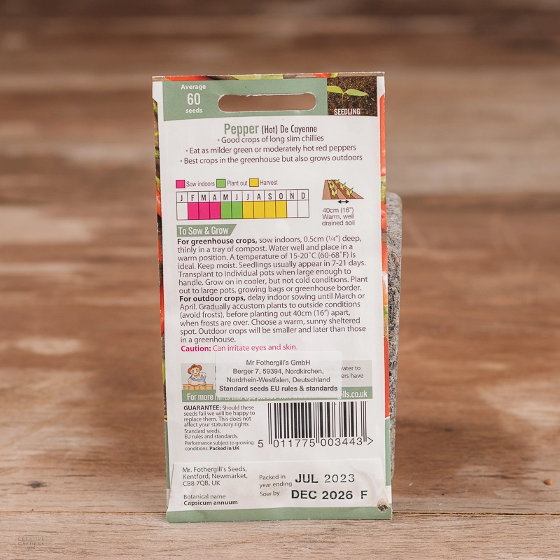 Are you looking for the product "Pepper (Hot) De Cayenne"? We offer Fothergills Seeds products in our garden centers in Donaghadee, Bushmills, Galgorm and Logwood. You can also order the product "Pepper (Hot) De Cayenne" online for £ 3.19 or check the products in Seeds & Bulbs. We look forward to seeing you soon!