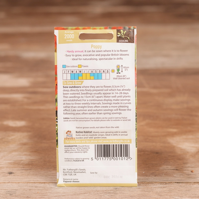 Are you looking for the product "Poppy"? We offer Fothergills Seeds products in our garden centers in Donaghadee, Bushmills, Galgorm and Logwood. You can also order the product "Poppy" online for £ 3.19 or check the products in Seeds & Bulbs. We look forward to seeing you soon!