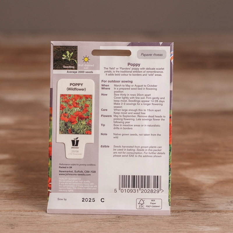 Are you looking for the product "Poppy"? We offer Johnsons Seeds products in our garden centers in Donaghadee, Bushmills, Galgorm and Logwood. You can also order the product "Poppy" online for £ 3.19 or check the products in Seeds & Bulbs. We look forward to seeing you soon!