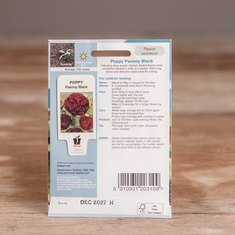 Are you looking for the product "Poppy Paeony Black"? We offer Johnsons Seeds products in our garden centers in Donaghadee, Bushmills, Galgorm and Logwood. You can also order the product "Poppy Paeony Black" online for £ 3.19 or check the products in Seeds & Bulbs. We look forward to seeing you soon!