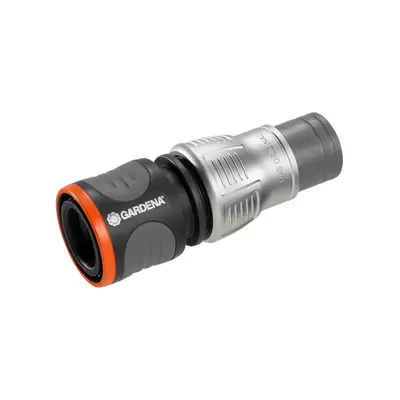 The Premium Hose Connector from GARDENA is a useful adapter with many practical features. The connector is very robust due to the high-quality metal-plastic design, you can feel the quality in the hands. It allows you to quickly and conveniently connect at the beginning of the hose. The sturdy metal clamping nut with extended hose guide ensures a high hose gripping force, while the integrated kink protection prevents the hose from slipping out. The soft plastic grooved recessed grips will help you when connecting and prevent slipping, even with wet hands. Since you will be using the premium hose connector primarily outdoors, the frost resistance is particularly helpful. The quality product is made in Germany from high-quality materials, which give the Premium Hose Connector a longevity on which GARDENA offers a 5-year warranty. Das Original GARDENA System.