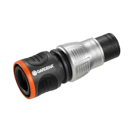 The Premium Water Stop by GARDENA is a particularly robust and high-quality metal-plastic connector, which enables you to change watering accessories quickly and easily. As soon as you disconnect an accessory such as a spray nozzle, the water flow is immediately cut off by the Auto Water Stop function and only starts again when you firmly connect another watering accessory to the hose. This saves you a trip to the tap and you can continue watering your plants on the spot. Several features ensure ease of use during operation. One of them is the high hose pressure, which is achieved by the sturdy metal clamping nut with extended hose guide. The extended hose guide prevents the hose from slipping out of the water tap. The Premium Water Stop has grooved recessed grips for exceptionally comfortable handling and to prevent slipping from wet hands. The Premium Water Stop is made of high-quality materials and is therefore frost-proof, you can use it all year round. Experience the benefits of this GARDENA Made in Germany quality product, supported by a 5-year warranty. Das Original GARDENA System.