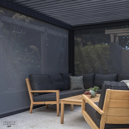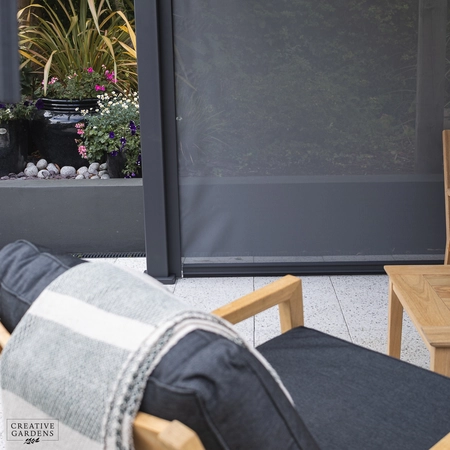 This Texteline Pull Down Screen is designed to fit the Titan 3m Pergolas. Adding this Pull Down Screen to your Titan Pergola will give you the option to create a private relaxation area, or simply some shelter from an evening breeze or when the sun is low in the sky.