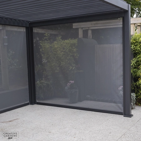 This Texteline Pull Down Screen is designed to fit the Titan 4m Pergolas. Adding this Pull Down Screen to your Titan Pergola will give you the option to create a private relaxation area, or simply some shelter from an evening breeze or when the sun is low in the sky.