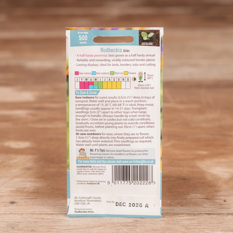 Are you looking for the product "Rudbeckia Aries"? We offer Fothergills Seeds products in our garden centers in Donaghadee, Bushmills, Galgorm and Logwood. You can also order the product "Rudbeckia Aries" online for £ 3.19 or check the products in Seeds & Bulbs. We look forward to seeing you soon!