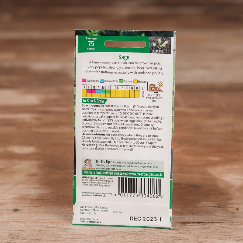 Are you looking for the product "Sage"? We offer Fothergills Seeds products in our garden centers in Donaghadee, Bushmills, Galgorm and Logwood. You can also order the product "Sage" online for £ 2.99 or check the products in Seeds & Bulbs. We look forward to seeing you soon!