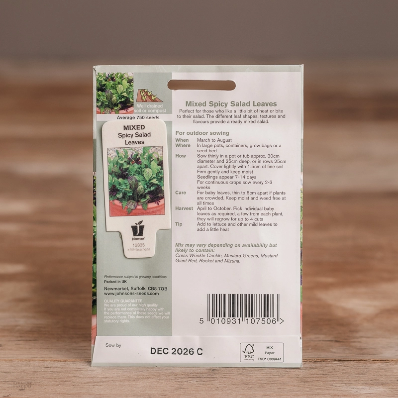 Are you looking for the product "Salad Leaves Spicy Mix"? We offer Johnsons Seeds products in our garden centers in Donaghadee, Bushmills, Galgorm and Logwood. You can also order the product "Salad Leaves Spicy Mix" online for £ 3.49 or check the products in Seeds & Bulbs. We look forward to seeing you soon!