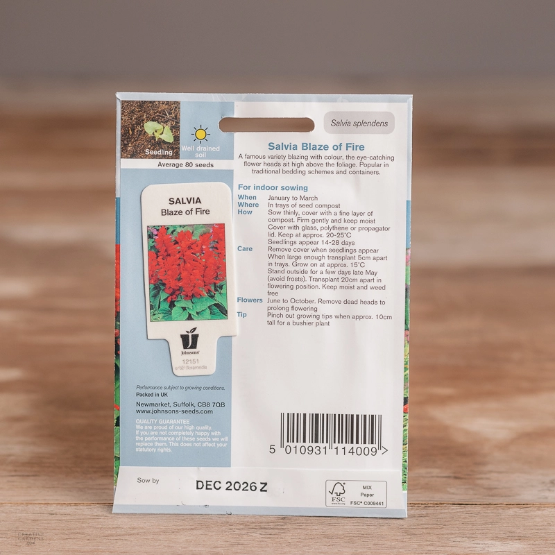 Are you looking for the product "Salvia Blaze Of Fire"? We offer Johnsons Seeds products in our garden centers in Donaghadee, Bushmills, Galgorm and Logwood. You can also order the product "Salvia Blaze Of Fire" online for £ 3.19 or check the products in Seeds & Bulbs. We look forward to seeing you soon!
