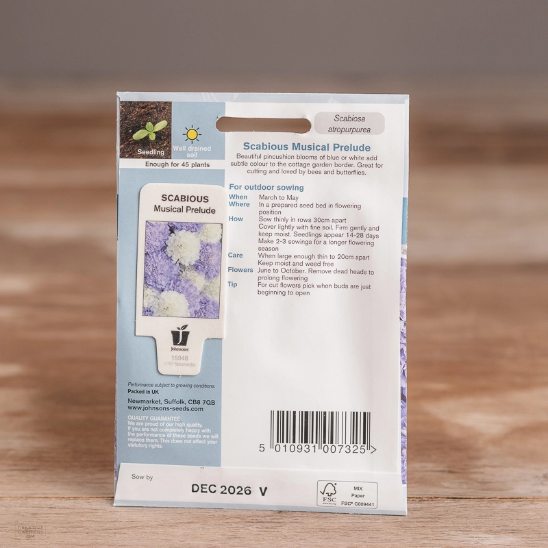 Are you looking for the product "Scabious Musical Prelude"? We offer Johnsons Seeds products in our garden centers in Donaghadee, Bushmills, Galgorm and Logwood. You can also order the product "Scabious Musical Prelude" online for £ 3.49 or check the products in Seeds & Bulbs. We look forward to seeing you soon!