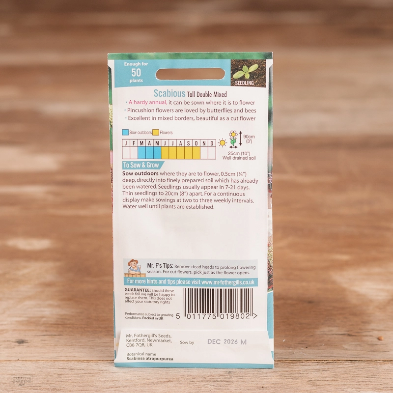 Are you looking for the product "Scabious Tall Double Mix"? We offer Fothergills Seeds products in our garden centers in Donaghadee, Bushmills, Galgorm and Logwood. You can also order the product "Scabious Tall Double Mix" online for £ 3.19 or check the products in Seeds & Bulbs. We look forward to seeing you soon!