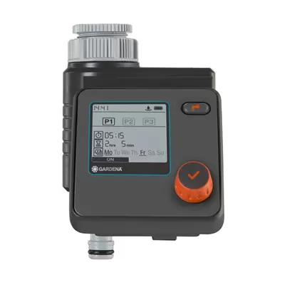 The GARDENA Water Control Select takes care of watering your plants fully automatically. Automatic watering is a great help for garden or balcony maintenance, especially if you are away a lot or want to make your day more flexible. The Water Control Select is connected directly to the water tap and then your GARDENA hose is also attached, which leads to the garden areas needing water. You can use it, for example, to connect a sprinkler, a Micro-Drip drip irrigation or an underground sprinkler system. It's possible to set up to three different watering schedules on the detachable control panel. Just programme the start time, watering duration and weekdays for each programme using the large, intuitive setting button. Each programme can be set for a watering duration from 1 minute to 7 hours and 59 minutes. The three programmes are visible on the LCD display. Various useful functions of Water Control Select make it even easier for you, for example, a screen lock prevents you from accidentally changing a setting. If you only need a bucket of water, you can get water directly from Water Control Select thanks to the Water Now function. The Safe-Stop technology ensures that the next watering session is not started if the battery level is too low. This way the water flow never runs uncontrolled. In addition, a Soil Moisture Sensor can be connected to Water Control Select - this is practical if you want to water the garden as efficiently as possible. If the Soil Moisture Sensor indicates that the soil is still damp, Water Control Select skips the next watering cycle. This ensures that watering only takes place when it is necessary. Sometimes it makes sense to prepare the soil for the actual irrigation with a shorter pre-irrigation. This is exactly what the GARDENA Water Control Select with its various programmes is ideally suited for. It reliably takes care of the garden watering. Water Controls. The full portfolio with innovative features for automatic and water-saving garden irrigation.