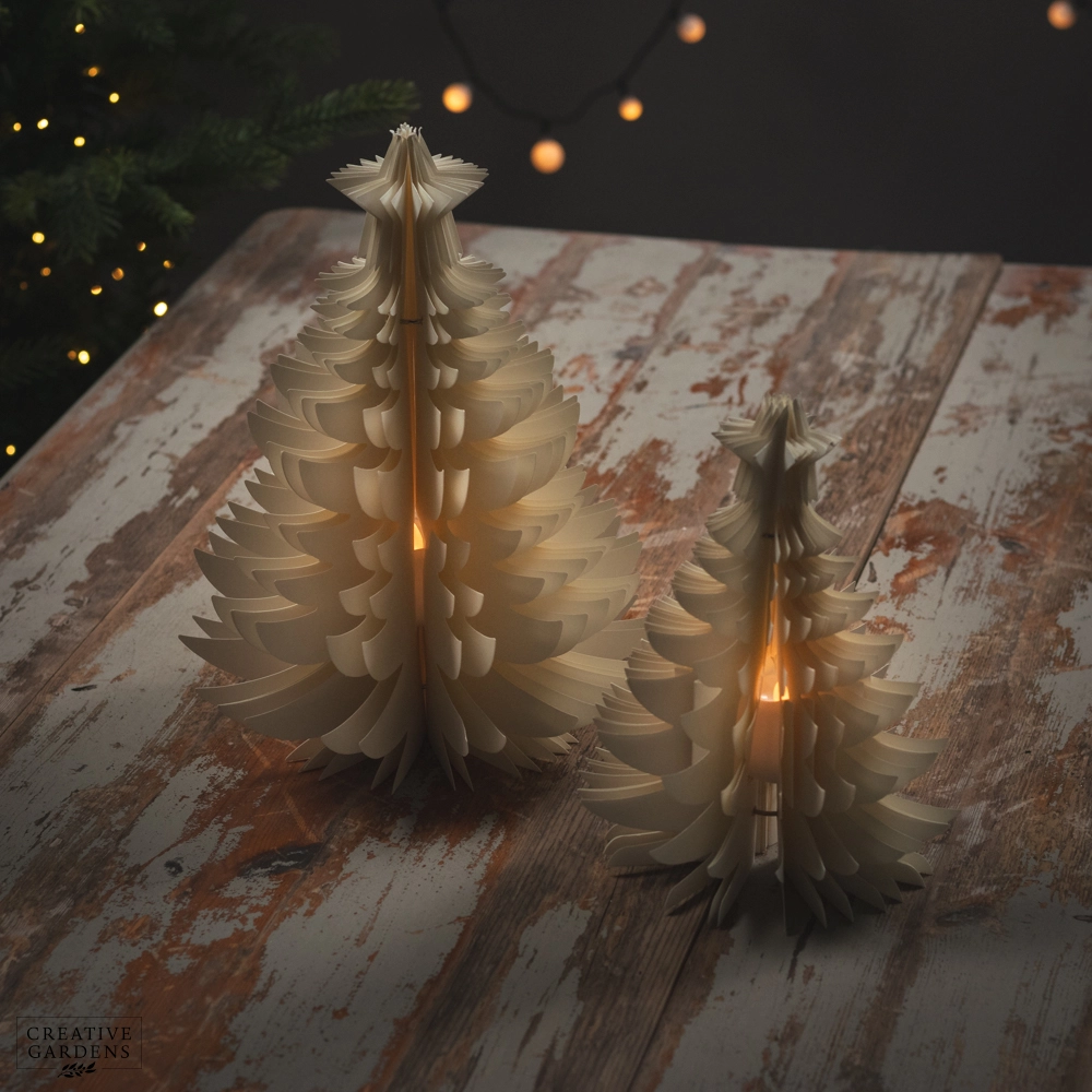 Twin Pack of Paper Christmas Trees with Warm White LED Tealight Inserts