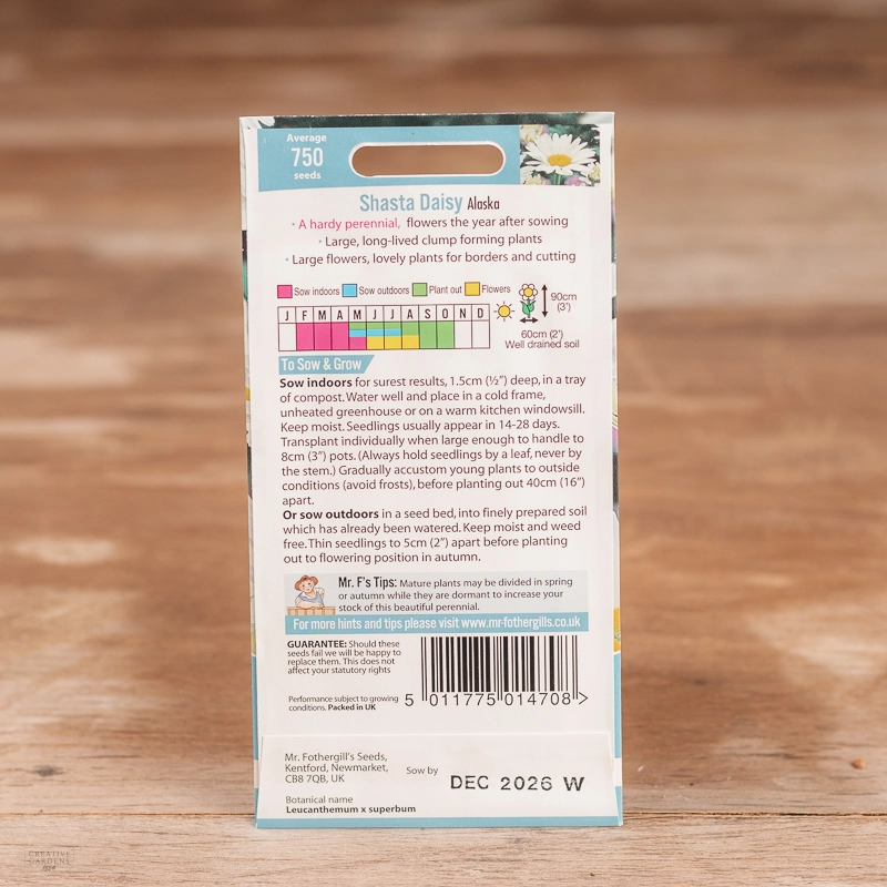 Are you looking for the product "Shasta Daisy Alaska"? We offer Fothergills Seeds products in our garden centers in Donaghadee, Bushmills, Galgorm and Logwood. You can also order the product "Shasta Daisy Alaska" online for £ 3.19 or check the products in Seeds & Bulbs. We look forward to seeing you soon!