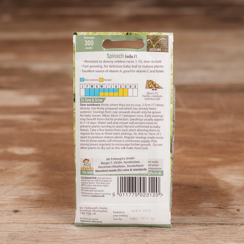 Are you looking for the product "Spinach Emilia F1"? We offer Fothergills Seeds products in our garden centers in Donaghadee, Bushmills, Galgorm and Logwood. You can also order the product "Spinach Emilia F1" online for £ 3.19 or check the products in Seeds & Bulbs. We look forward to seeing you soon!