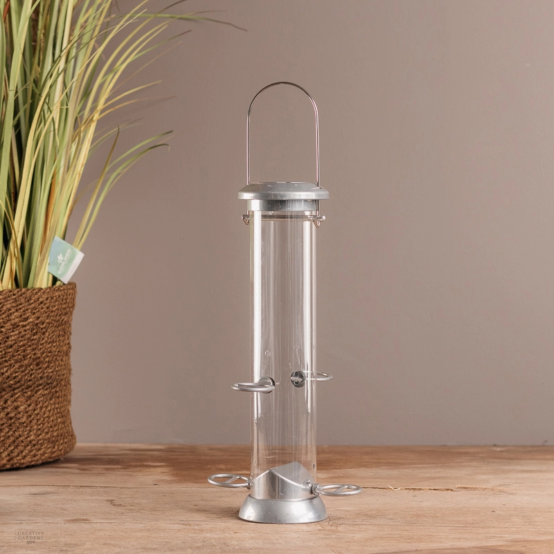 A sleek, contemporary, robust feeder featuring an easy opening lid and a removable base for easy cleaning. This feeder holds nyger seed. The design incorporates bird friendly perches to enable birds to comfortably feed and an angled base to ensure the seed flows to the feeding ports. A contemporary hanging feeder designed to hold Nyger and smaller seed varieties with 4 feeding ports. Great for feeding a wide variety of garden birds including Goldfinches, Chaffinches & Siskins. Featuring a stainless steel hanger, easy opening lid and angled base to support the flow of feed to the feeding ports. The base is also removable for easier cleaning. The Henry Bell Nyger Feeder has ring perches which enable your garden birds to feed longer and more comfortably. This feature allows birds to move around whilst feeding ensuring they have clearer visibility of any potential predators There are ever decreasing food resources for wild birds and it is becoming more and more essential that you feed your garden birds all year round. Once you have started please carry on and create a routine as the birds will become reliant upon your help to bring life and vitality into your space. Put out feed regularly and please ensure that there is plenty of fresh water available.