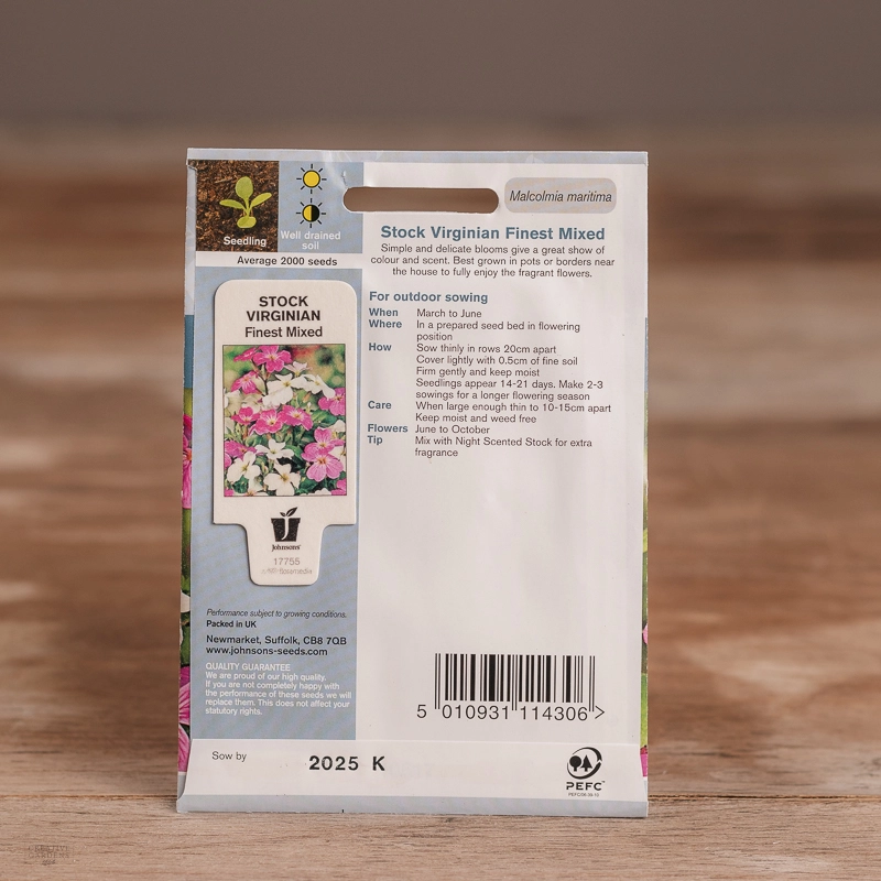 Are you looking for the product "Stock Virginian Finest Mix"? We offer Johnsons Seeds products in our garden centers in Donaghadee, Bushmills, Galgorm and Logwood. You can also order the product "Stock Virginian Finest Mix" online for £ 1.99 or check the products in Seeds & Bulbs. We look forward to seeing you soon!