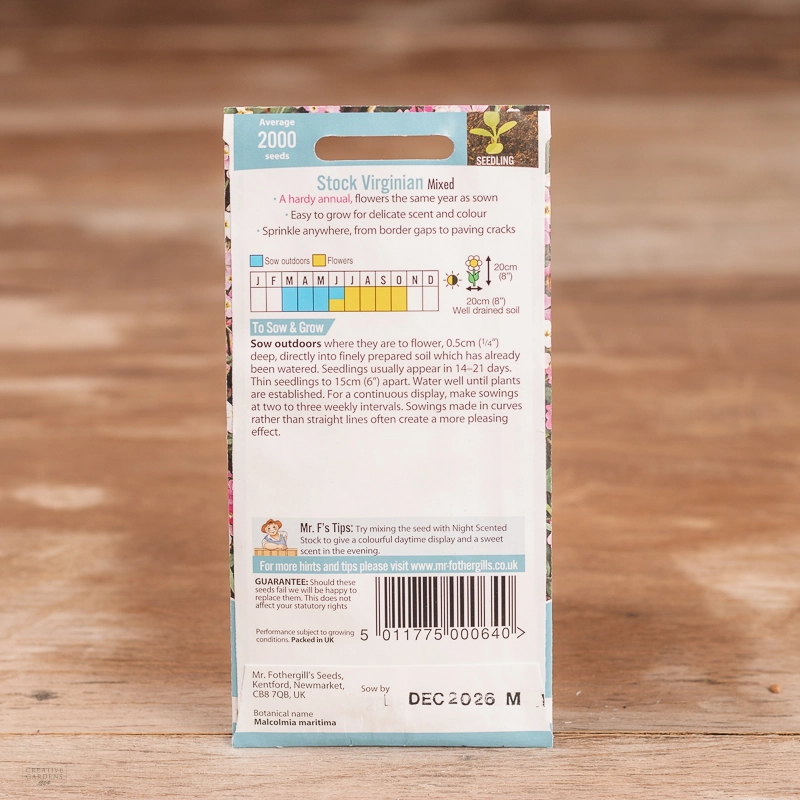 Are you looking for the product "Stock Virginian Mix"? We offer Fothergills Seeds products in our garden centers in Donaghadee, Bushmills, Galgorm and Logwood. You can also order the product "Stock Virginian Mix" online for £ 1.99 or check the products in Seeds & Bulbs. We look forward to seeing you soon!