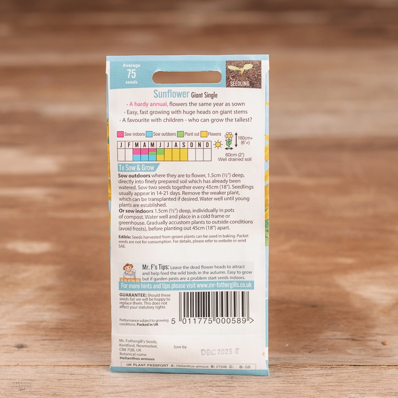 Are you looking for the product "Sunflower Giant Single"? We offer Fothergills Seeds products in our garden centers in Donaghadee, Bushmills, Galgorm and Logwood. You can also order the product "Sunflower Giant Single" online for £ 1.99 or check the products in Seeds & Bulbs. We look forward to seeing you soon!