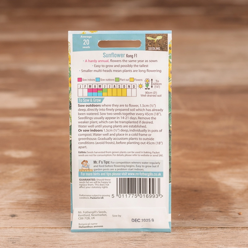 Are you looking for the product "Sunflower Kong F1"? We offer Fothergills Seeds products in our garden centers in Donaghadee, Bushmills, Galgorm and Logwood. You can also order the product "Sunflower Kong F1" online for £ 3.49 or check the products in Seeds & Bulbs. We look forward to seeing you soon!
