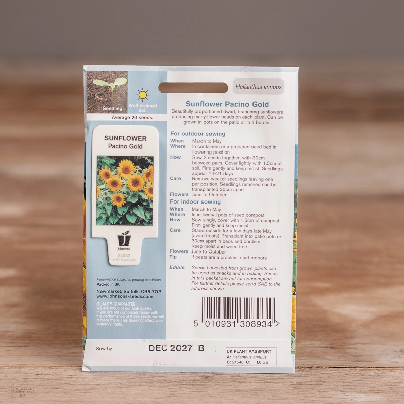 Are you looking for the product "Sunflower Pacino Gold"? We offer Johnsons Seeds products in our garden centers in Donaghadee, Bushmills, Galgorm and Logwood. You can also order the product "Sunflower Pacino Gold" online for £ 3.49 or check the products in Seeds & Bulbs. We look forward to seeing you soon!