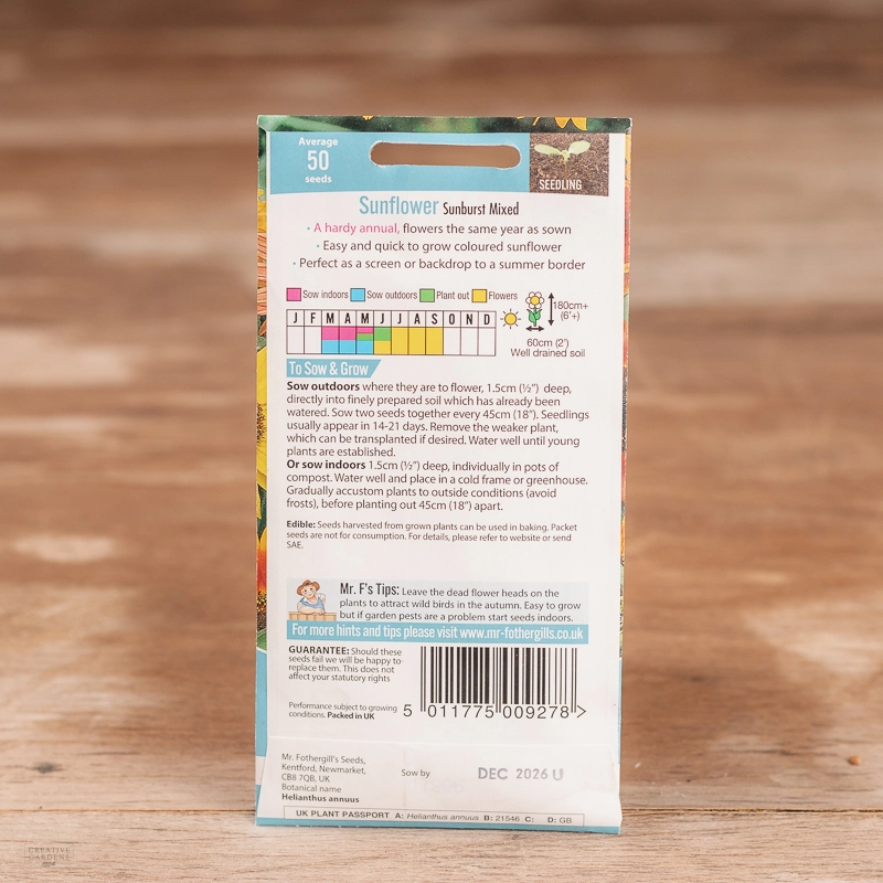 Are you looking for the product "Sunflower Sunburst Mix"? We offer Fothergills Seeds products in our garden centers in Donaghadee, Bushmills, Galgorm and Logwood. You can also order the product "Sunflower Sunburst Mix" online for £ 3.19 or check the products in Seeds & Bulbs. We look forward to seeing you soon!