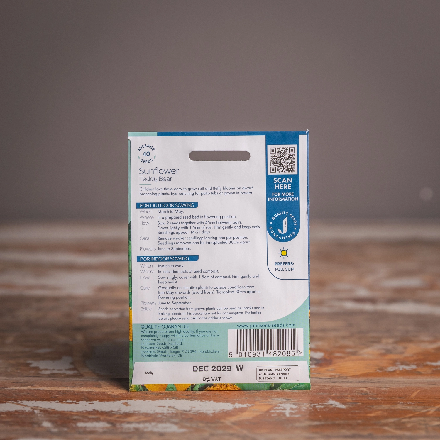 Are you looking for the product "Sunflower Teddy Bear"? We offer Johnsons Seeds products in our garden centers in Donaghadee, Bushmills, Galgorm and Logwood. You can also order the product "Sunflower Teddy Bear" online for £ 3.19 or check the products in Seeds & Bulbs. We look forward to seeing you soon!