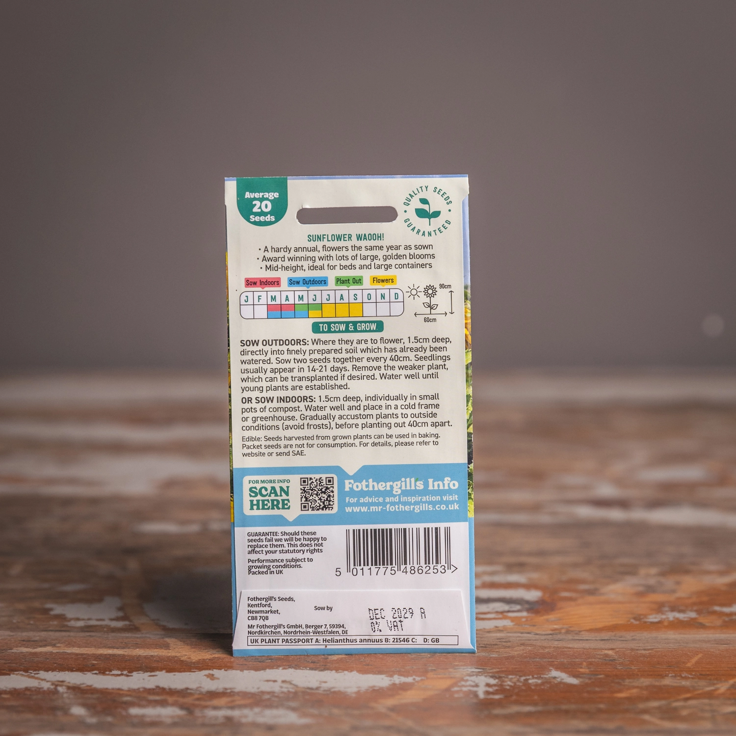 Are you looking for the product "Sunflower Waooh!"? We offer Fothergills Seeds products in our garden centers in Donaghadee, Bushmills, Galgorm and Logwood. You can also order the product "Sunflower Waooh!" online for £ 3.49 or check the products in Seeds & Bulbs. We look forward to seeing you soon!