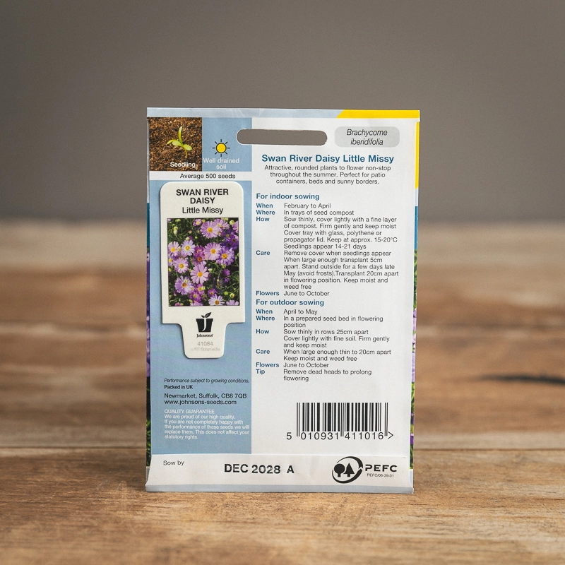 Are you looking for the product "Swan River Daisy Little Missy"? We offer Johnsons Seeds products in our garden centers in Donaghadee, Bushmills, Galgorm and Logwood. You can also order the product "Swan River Daisy Little Missy" online for £ 3.19 or check the products in Seeds & Bulbs. We look forward to seeing you soon!