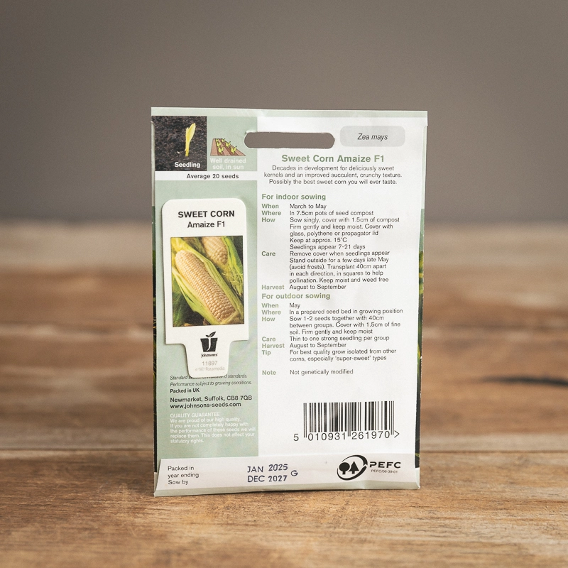 Are you looking for the product "Sweet Corn Amaize F1"? We offer Johnsons Seeds products in our garden centers in Donaghadee, Bushmills, Galgorm and Logwood. You can also order the product "Sweet Corn Amaize F1" online for £ 3.99 or check the products in Seeds & Bulbs. We look forward to seeing you soon!